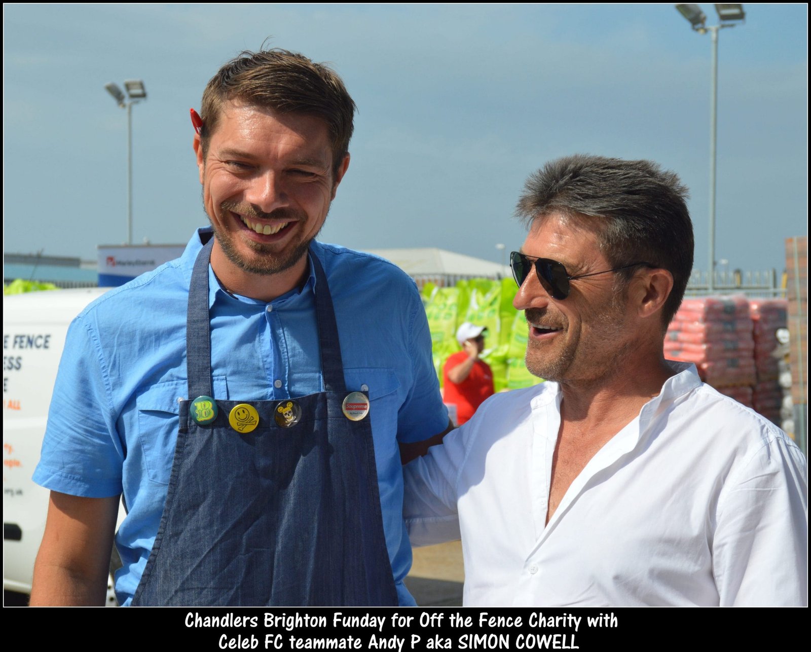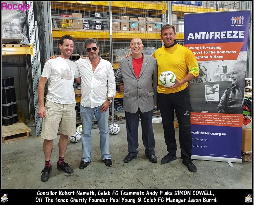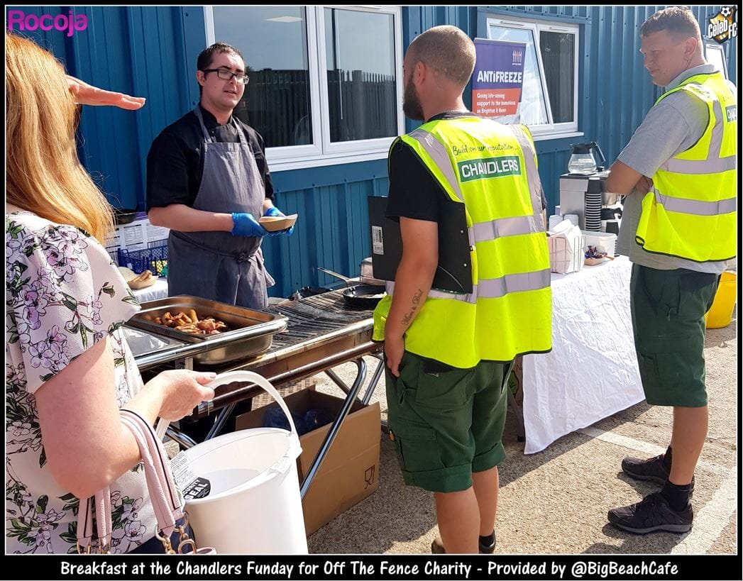 Sue McKinney of Chandlers Building Supplies said: “We are delighted to support the great work of everyone at Off The Fence, a charity dedicated to helping local homeless people. Our thanks go to the generosity of all customers and neighbours who supported the event, to the fabulous Big Beach Café for providing a free breakfast to encourage donations and to Celeb FC for providing ‘Simon Cowell’ and Jason Burrill.”