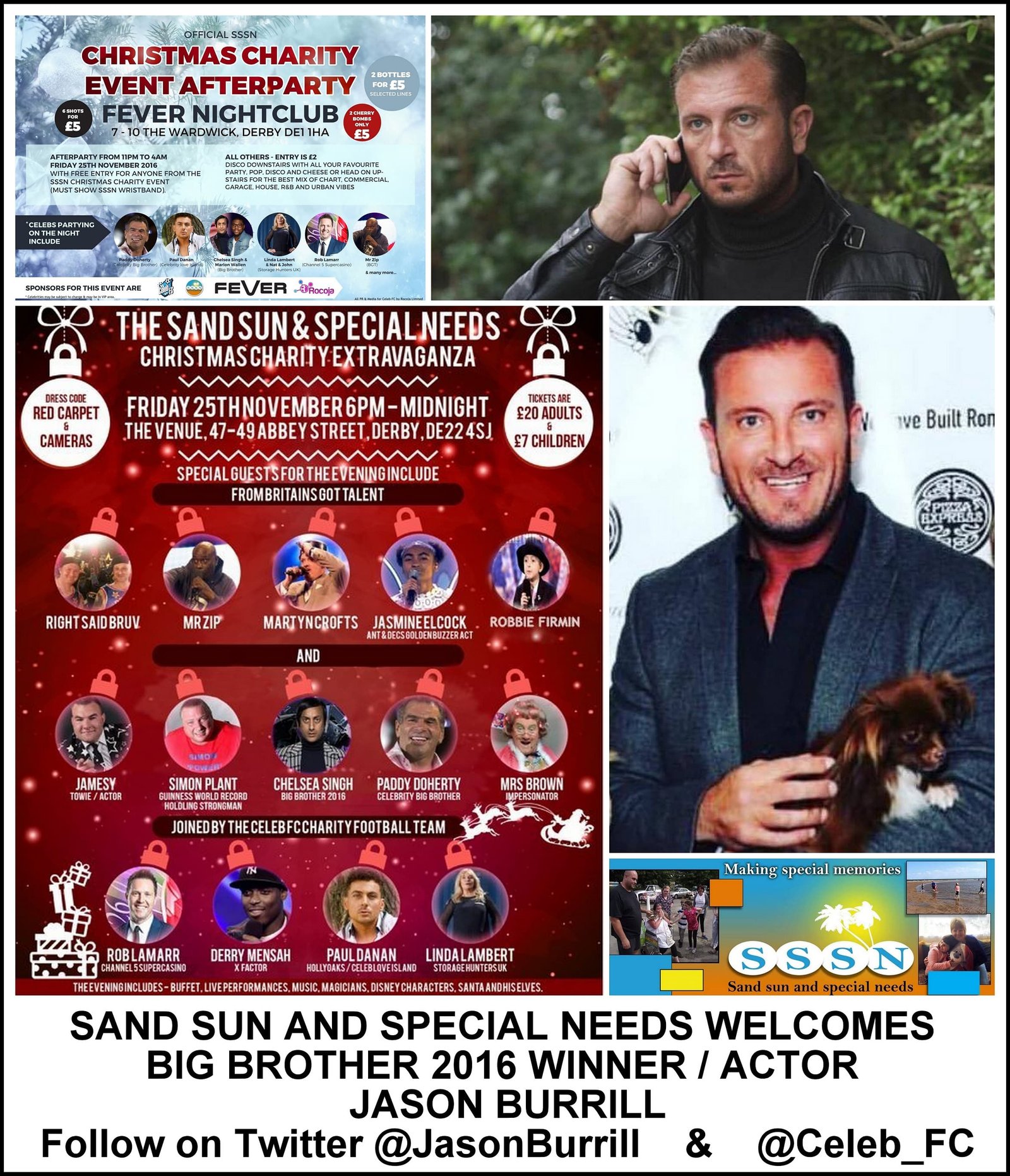 Sand, Sun and Special Needs. Voluntary & Community Group held their Christmas party on Friday the 25th of November. There were lots of acts performing on stage, including Jasmine Elcock (Ant and Decs golden buzzer 2016) Mr Zip #BGT (wheres my keys, wheres my phone) Martyn Crofts (bgt semi finalist dalek act) Right Said Bruv (bgt dance/comedy act). Robbie Firmin – BGT All finished of with a spectacular Headline performance from our very own #DERRY Also along were some great #Celebrity supporters from our #CelebFCFamily including Paddy Doherty – star of big fat gypsy wedding/winner of Big Brother Linda Lambert from Storage Hunters UK Rob Lamarr from Channel 5 SuperCasino Jason Burrill – Winner Big Brother 2016 Chelsea Singh – From Big Brother 2016 Mike Gabbitas – Fresh from the opening week of #FantasticBeastsandWhereToFindThem The great duo – Natalie & John from Storage Hunters UK George Gilbey from Gogglebox And The wonderful Linda Lambert from Storage Hunters UK It was a sell-out night –