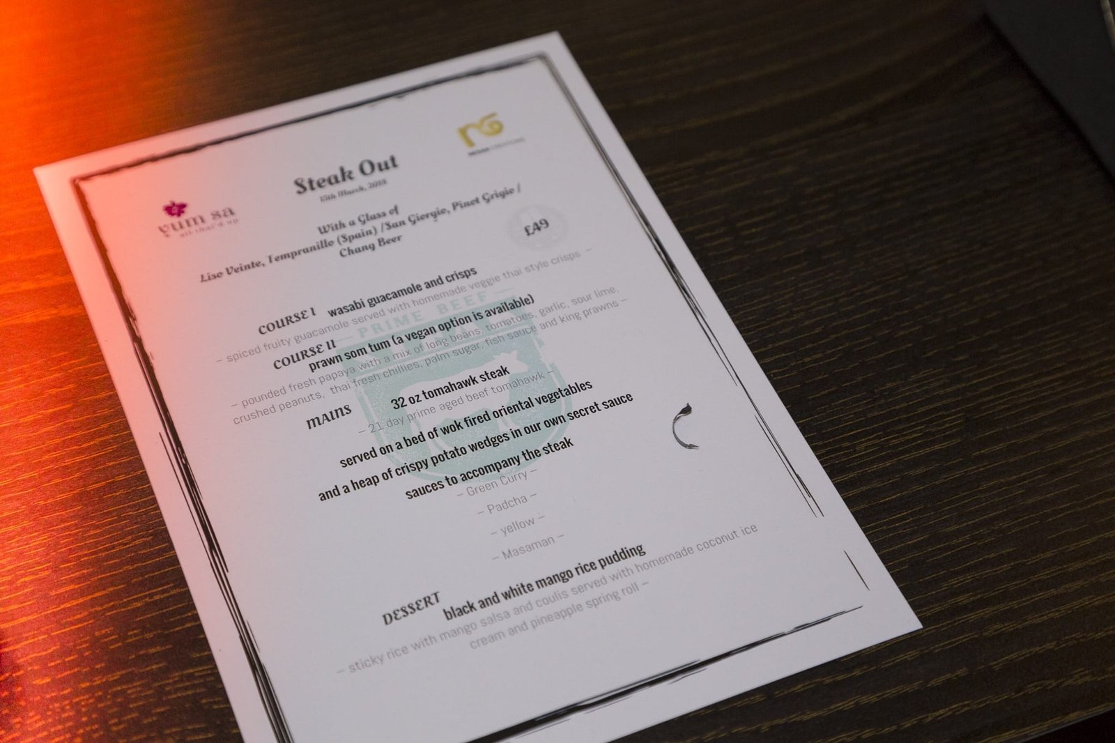- Menu at Yum-Sa © 2018 Charlie Burgio Photography