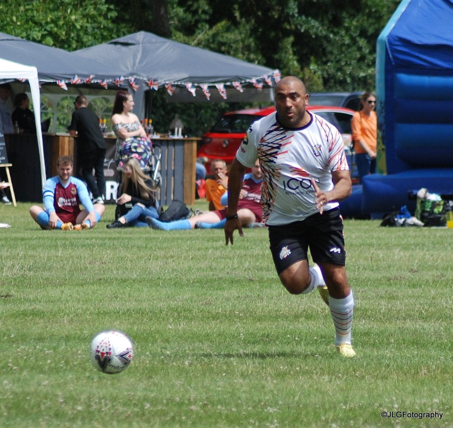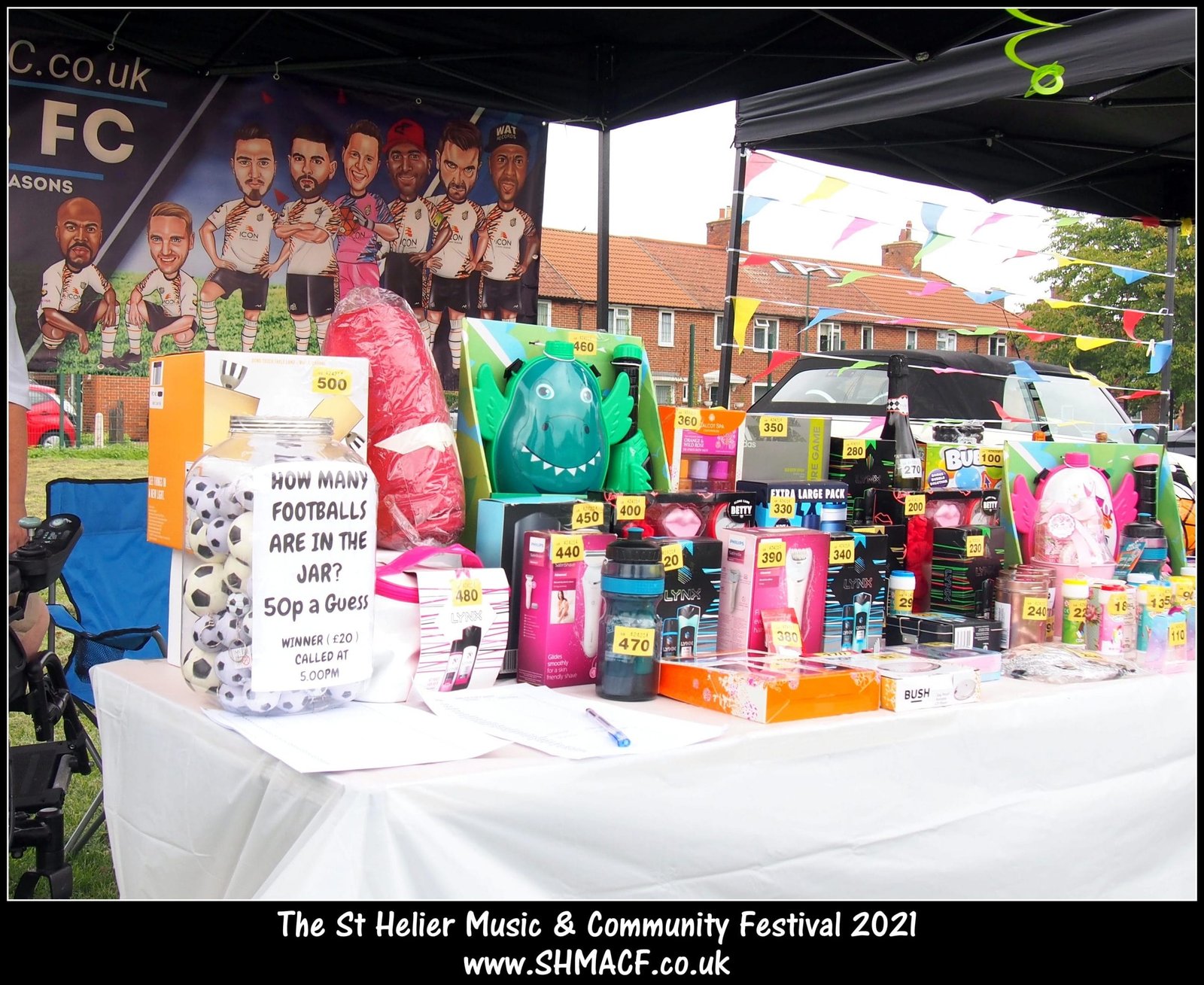 Celeb FC supporting the St Helier Music and Community event, with our Sponsors Rocoja Ltd, Taylored Events, British Red Bus & Kingies Castles.