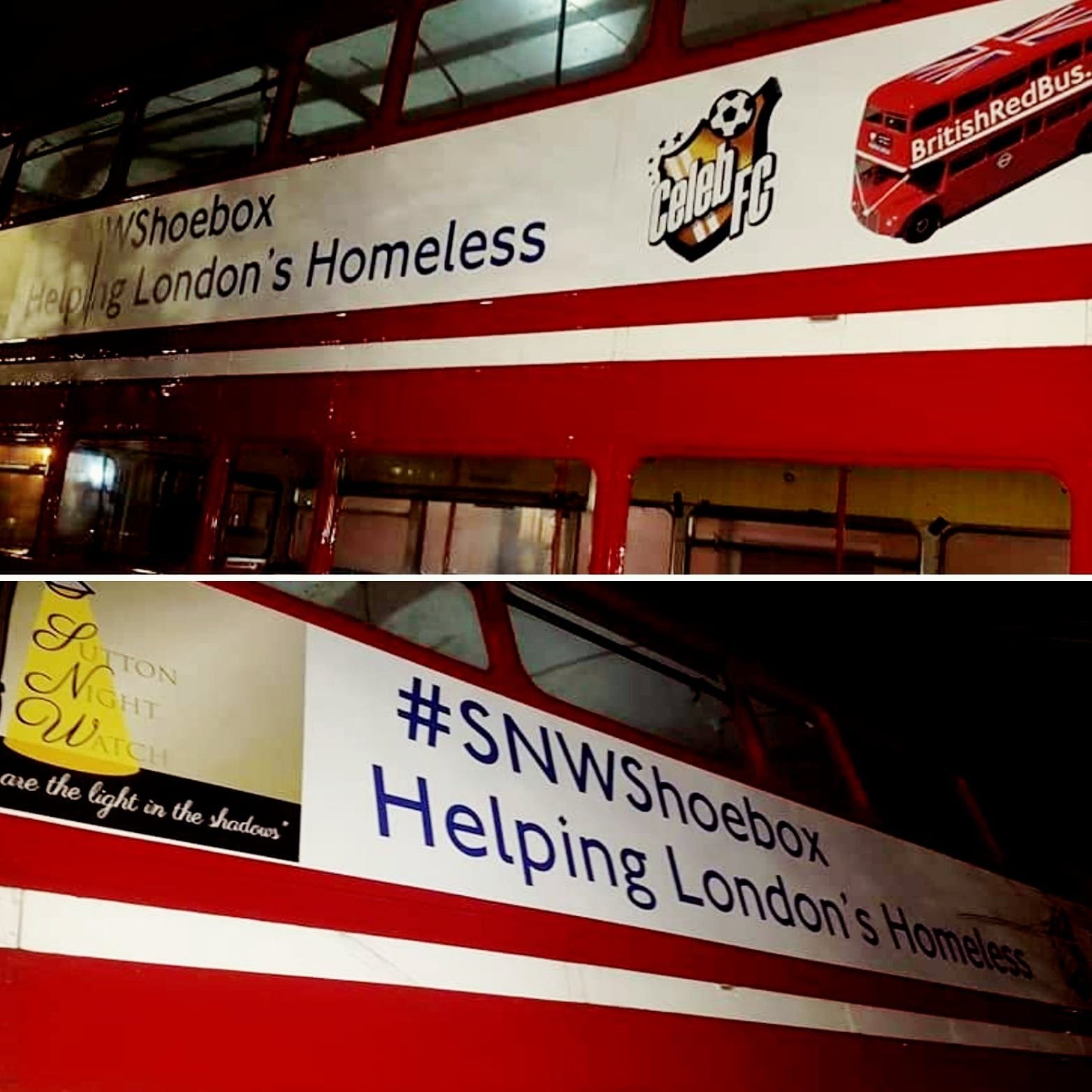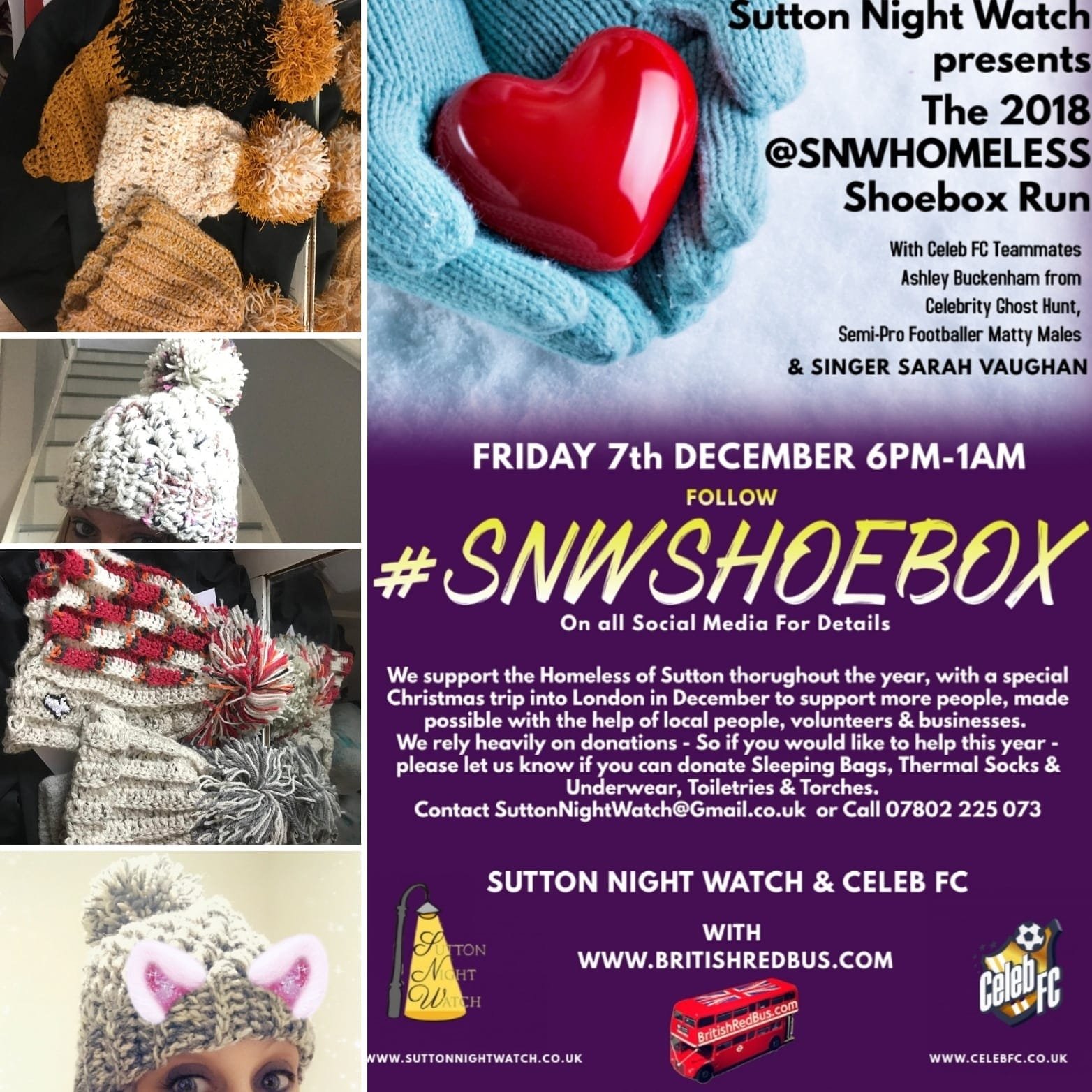 Celeb FC with Sutton Night Watch, Homeless Christmas Box run into central London